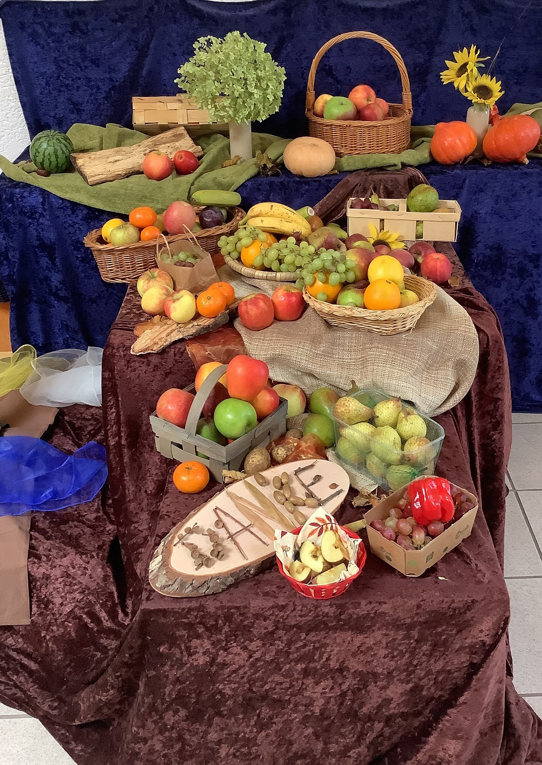 Die Kinder brachten viele verschiedene Früchte mit und in unserem Flur entstand ein wunderschöner Gabentisch.