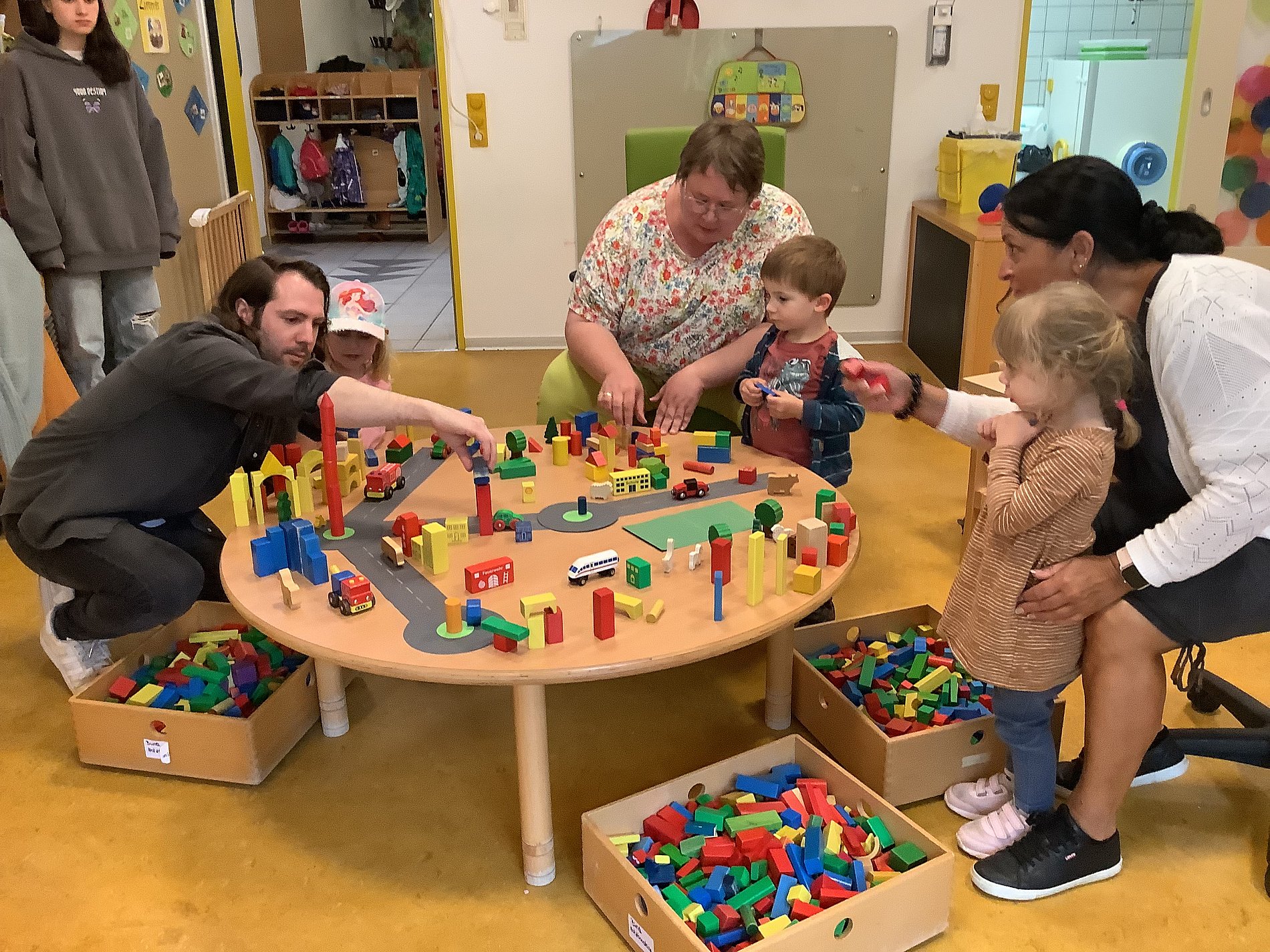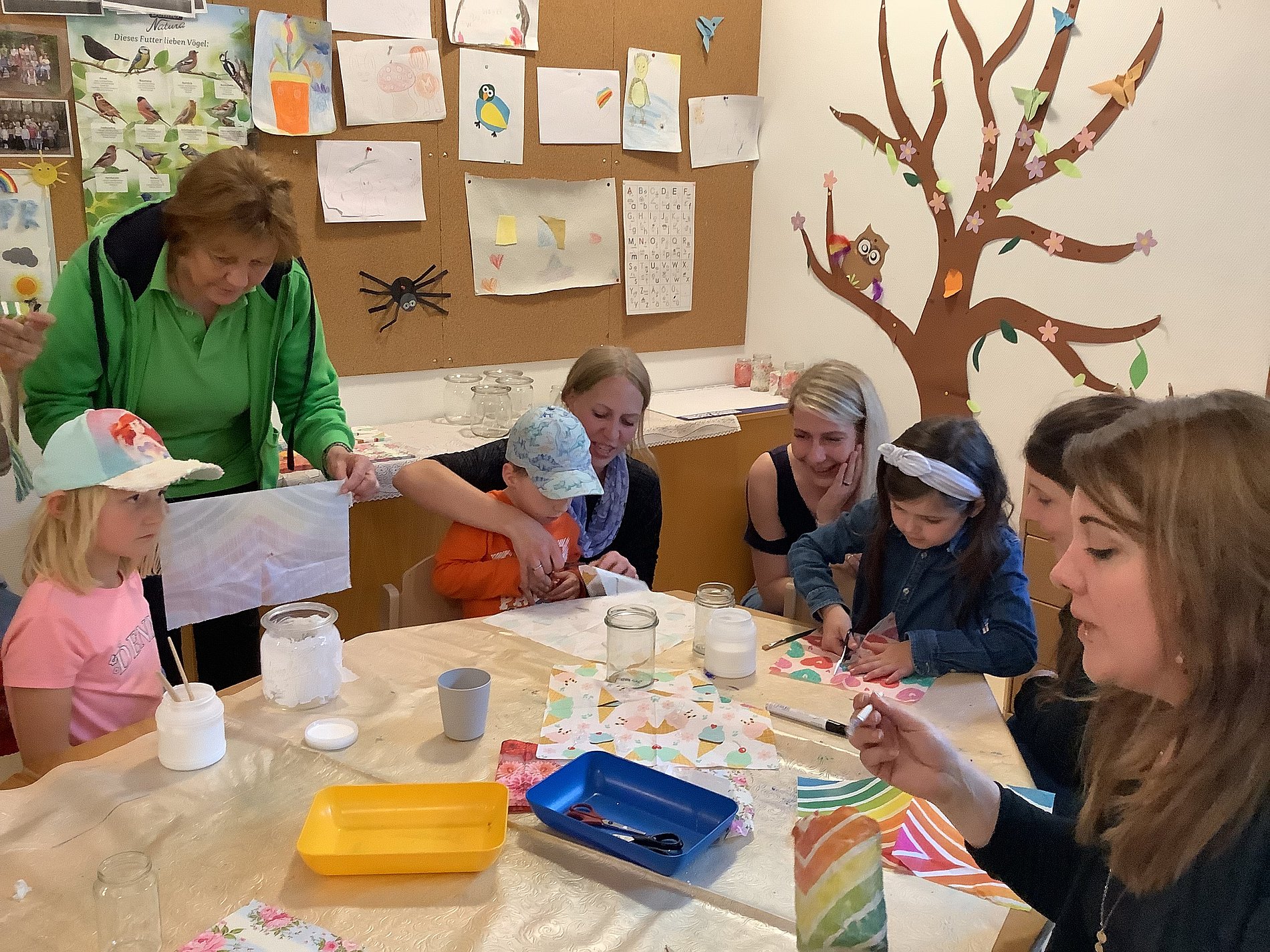 Nach einigen Dankesworten der Einrichtungsleitung und Vertreterinnen des Elternausschusses begann das eigentliche Sommerfest. Es gab viele Stationen, an denen man aktiv werden konnte: Die Kinder konnten mit Holzklötzen Höhr-Grenzhausen nachbauen, „Elefantenzahnpasta“ und dekorative Windlichter mit Serviettentechnik herstellen. Für die Höhrer Kirmes am folgenden Sonntag wurden Fahrzeuge mit Krepppapier bunt geschmückt.